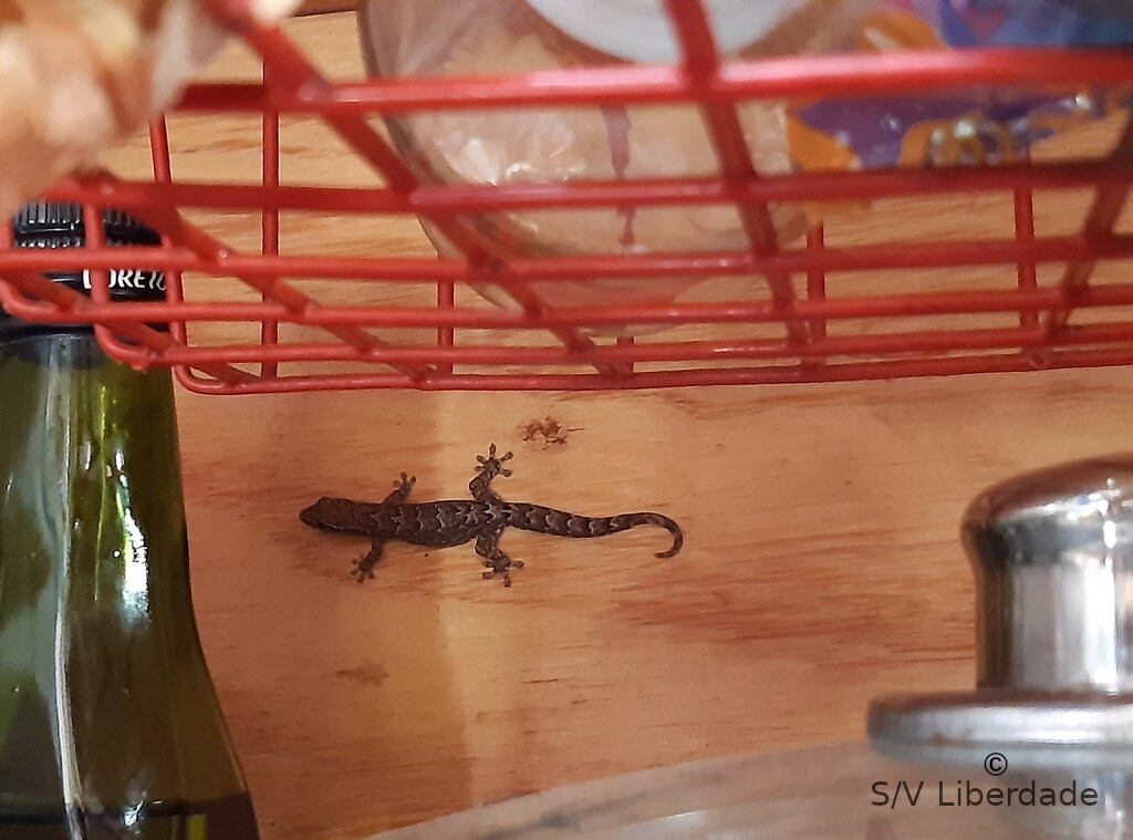 Une mauvaise nouvelle accompagnera la découverte de ce coin, notre petit compagnon Gecko qui se balade dans les méandres du bateau nous a quitté ! Le climat ou la nourriture (absente en cette saison sèche) lui a été fatal.    -   RIP   -