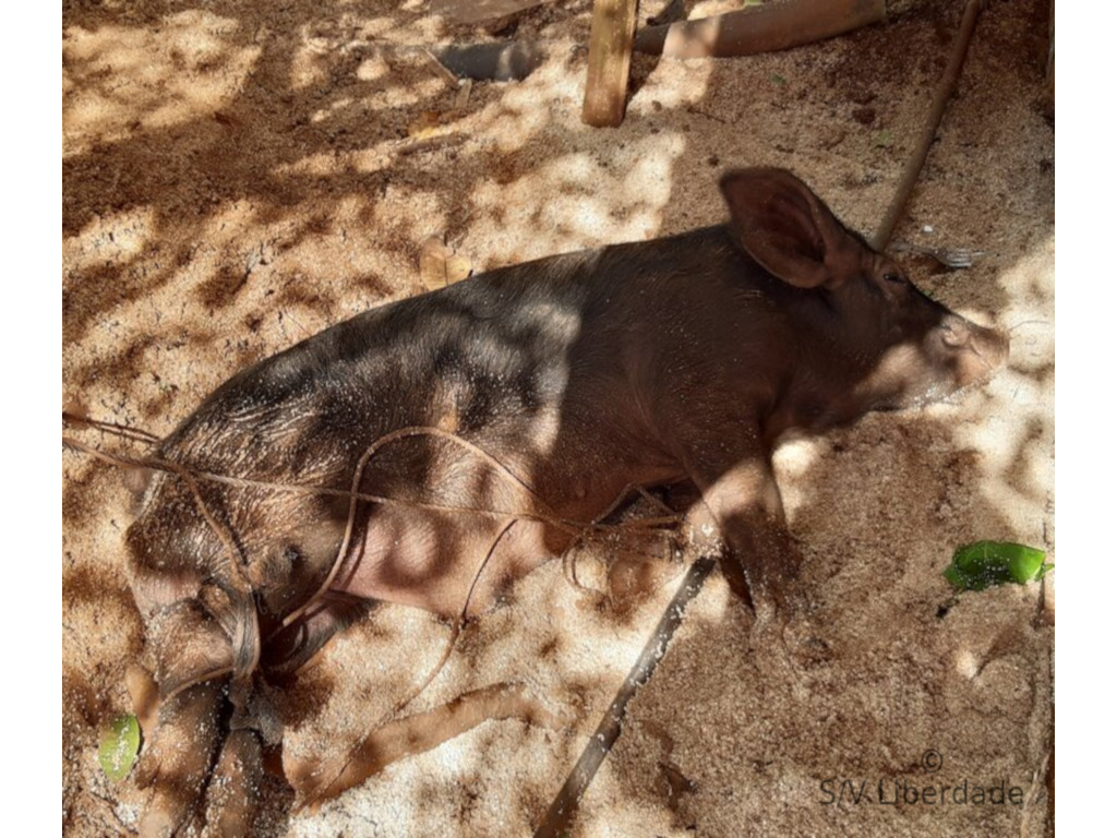 Ce sera aussi l'occasion de tester le four traditionnel polynésien : le "Ahi ma'a" dont voici l'invité principal qui fait une petite sieste avant les choses sérieuses.