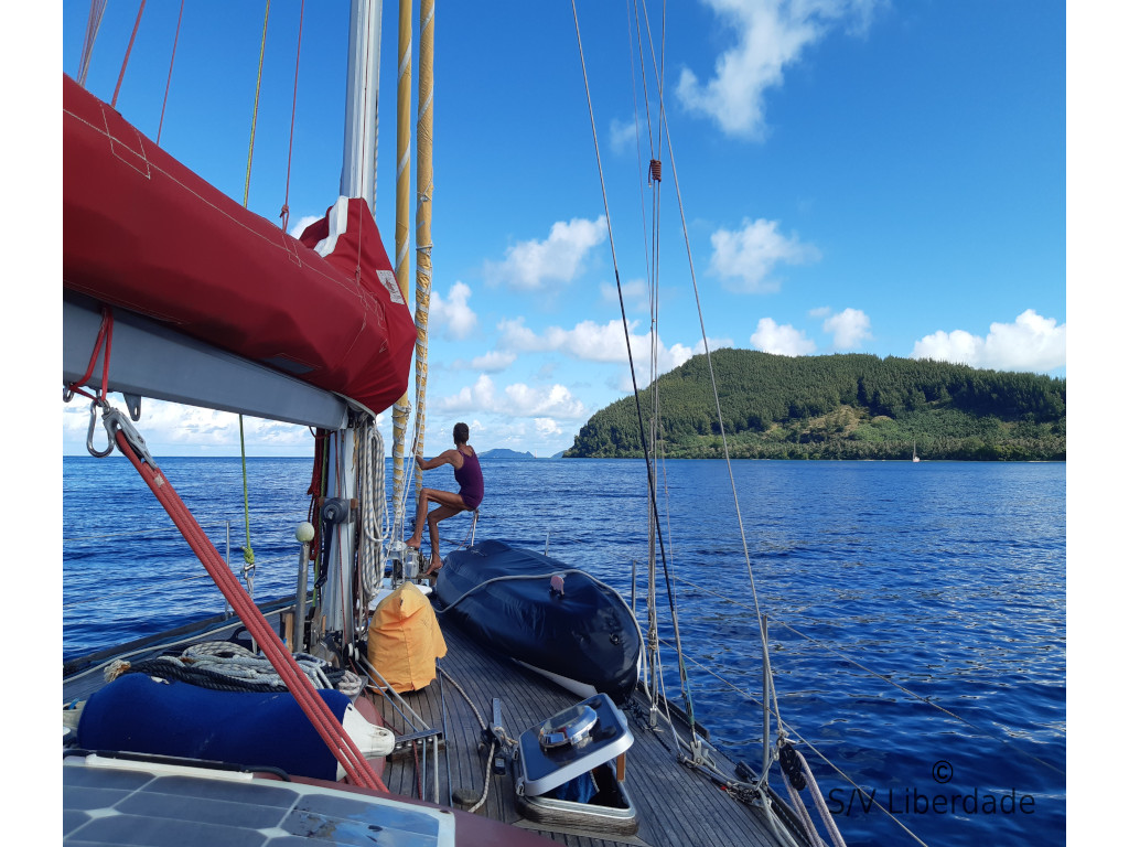 Lors d'un séjour sur Rikitea, nous ferons un peu d'entretien lourd avec la sortie du moteur pour remettre en état l'inverseur qui ne veut plus aller de l'avant !