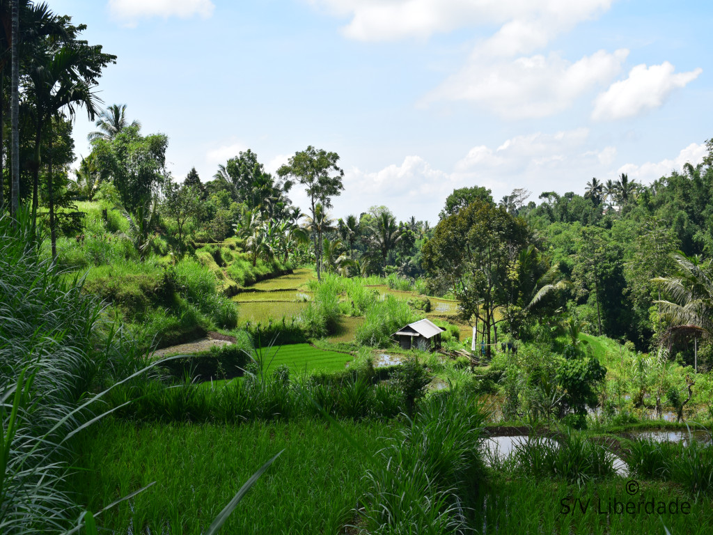 Un jeune homme au sourire indécrochable nous fera visiter le coin. Le chemin s'arrête au village ou nous sommes (Tetebatu). Ensuite il faut circuler le long des terrasses de rizières sur une bande de terre large de 50 cm, et grimper de palier en palier. GoogleMap on oubli !