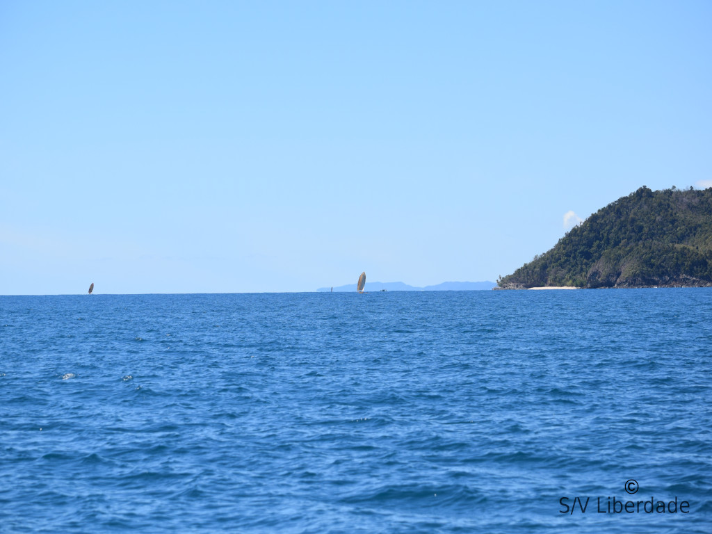 C'est le paradis de la pirogue à voile et à simple balancier! Aucun moteur içi contrairement à l'Indonésie. Ce sont des pro, on se fait doubler en permanence même par 25 nds de vent alors qu'ils sont à 6 dans une pirogue de 8m, 10cm au dessus de l'eau . La construction de ces engins est incroyable de technicités rudimentaires comme on le verra dans un village, et les virements de bords plus que complexe au regard de nos équipements modernes.