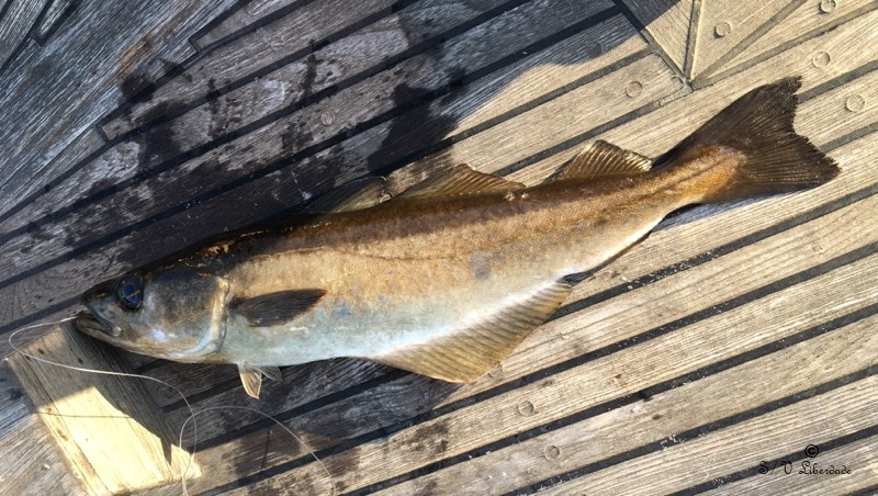Parmi les activités intéressantes du mouillage dans la région, il y a la pêche !De quoi s'occuper 5 minutes avant l'apéro, pas plus. Vous descendez quelques plumes dans 15 à 20 m d'eau, vous tapotez le plomb sur le fond rocheux l'air de réclamer et hop, cabillauds et autres lieus jaunes sont au rendez-vous.