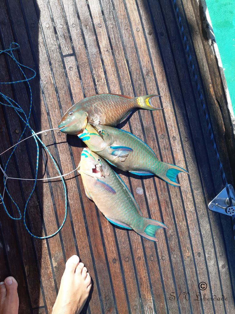 Nous grenouillons (nda :passer d'île en île comme une grenouille saute de nénuphar en nénuphar ;-) ) entre les multiples îles et lagons qui constitue cette archipel. Nous avons un permis pour 2 semaines maximum donc pas de temps à perdre. Les profondeurs ici tournent entre 3 et 5 m et toutes les bonnes places de mouillage se font dans moins de 2 m d'eau. Nous mesurons pleinement la chance d'avoir un voilier dériveur qui passe dans 80 cm d'eau ! Se retrouver à l'ancre dans 1 m d'eau est une expérience surprenante.