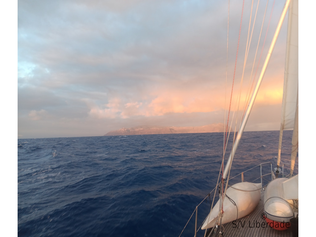 - Jour 10 : 6h lever du soleil, l'île apparait enfin droit devant, majestueuse. Un superbe thon jaune nous fait l'honneur de se joindre à nous. Nous devrions être au mouillage ce midi pour le déguster. Il y a des journées qui commencent bien !