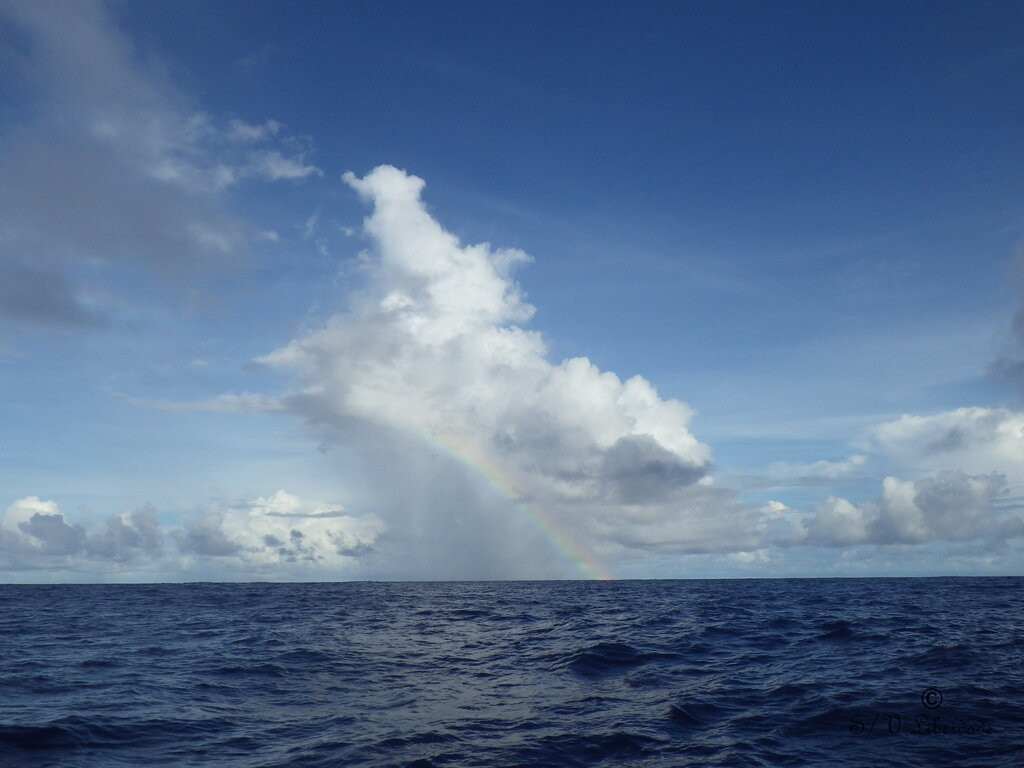Voiles réduites en ciseaux sur l'avant et on traverse les grains les uns après les autres. Les alizés de NE se font sentir.