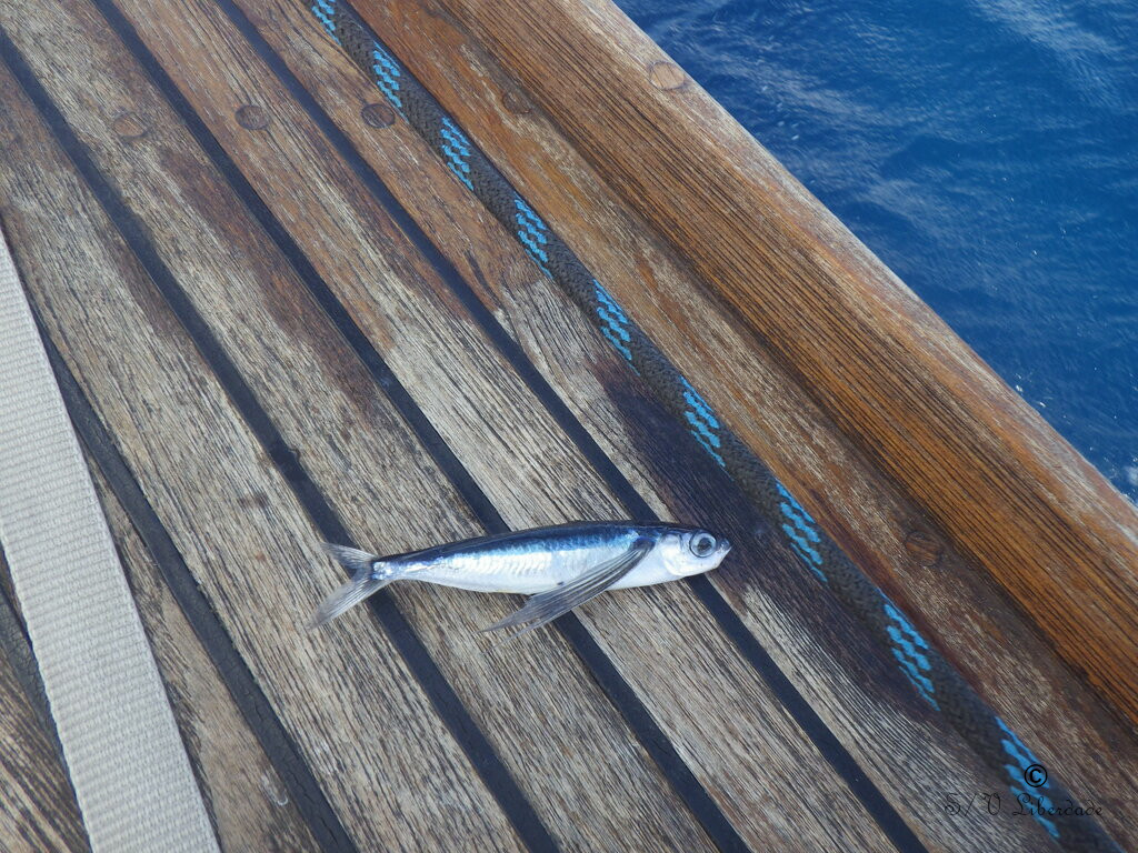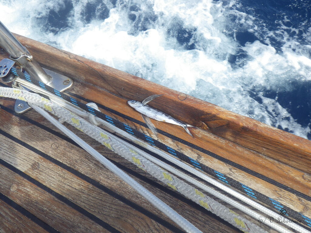 Chaque matin, c'est la récolte des victimes de la nuit sur le pont. Les plus beaux spécimen de poissons volants finissent en conserves.